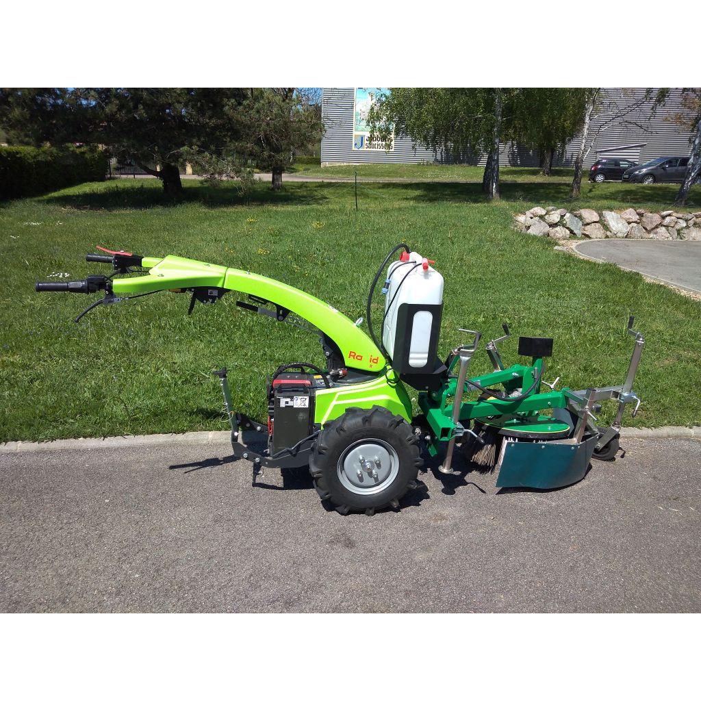 L’ergonomie parfaite de la machine, fruit de l’expérience centenaire de RAPID Suisse, permet une utilisation continue sans fatigue. Le poids est parfaitement équilibré sur l’essieu. La commande d’avancement par poignée tournante permet de passer progressivement la marche avant ou la marche arrière sans embrayage ni levier de vitesse. Toutes les commandes sont regroupées au guidon : avancement, régime moteur, mise en service de la prise de force, réglage de la vitesse de prise force, engagement du différentiel…