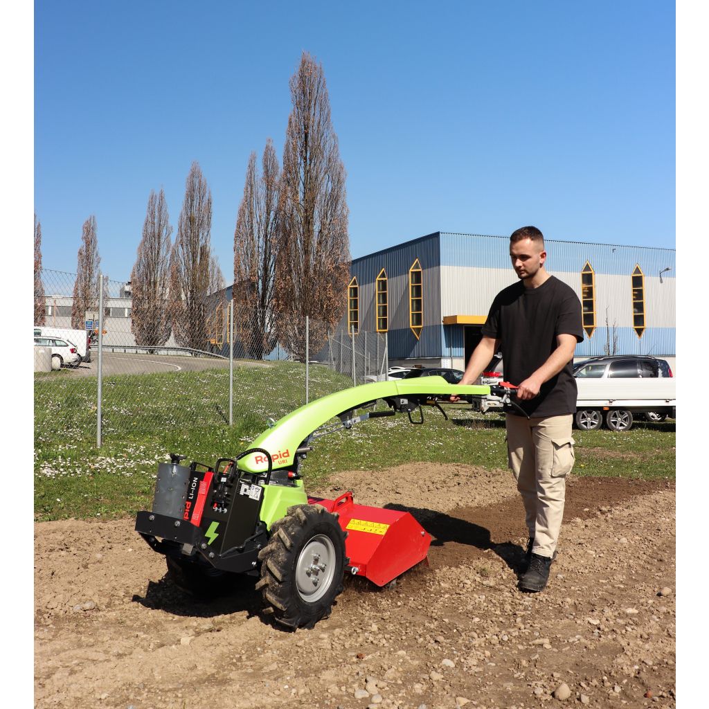 La Rapid URI impressionne par sa puissance et son endurance. Avec son pack batteries Li On de 48 Volts / 60 Ah, la puissance de travail est identique à celle d’une machine à moteur thermique de 9 chevaux.